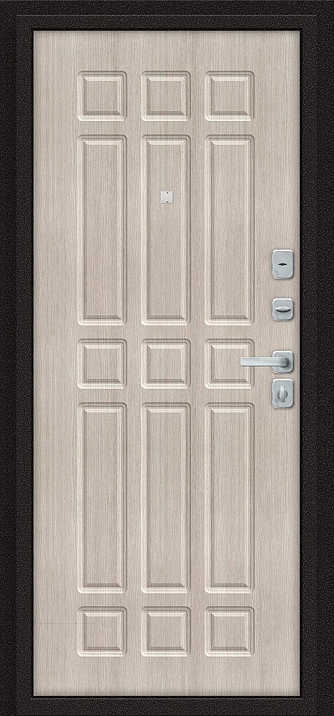 Семь усиливающих уголков и защитный карман для замков. Дополнительную стойкость ко взлому обеспечивают два противосъемных штыря.