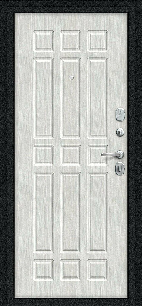 Семь усиливающих уголков и защитный карман для замков. Дополнительную стойкость ко взлому обеспечивают два противосъемных штыря.