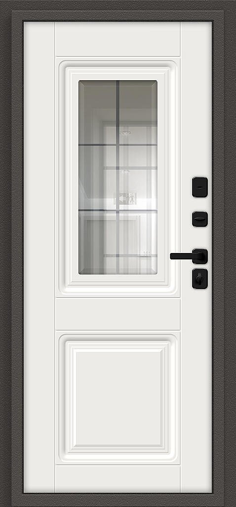 Терморазрыв (термомост) из натуральной пробки по периметру полотна. Внутри полотна установлена конструкционная теплоизоляционная панель SIP (Structural Insulated Panel), которая не только обеспечивает необходимую тепло- и шумоизоляцию, но и придает дополнительную жесткость и прочность дверному блоку.