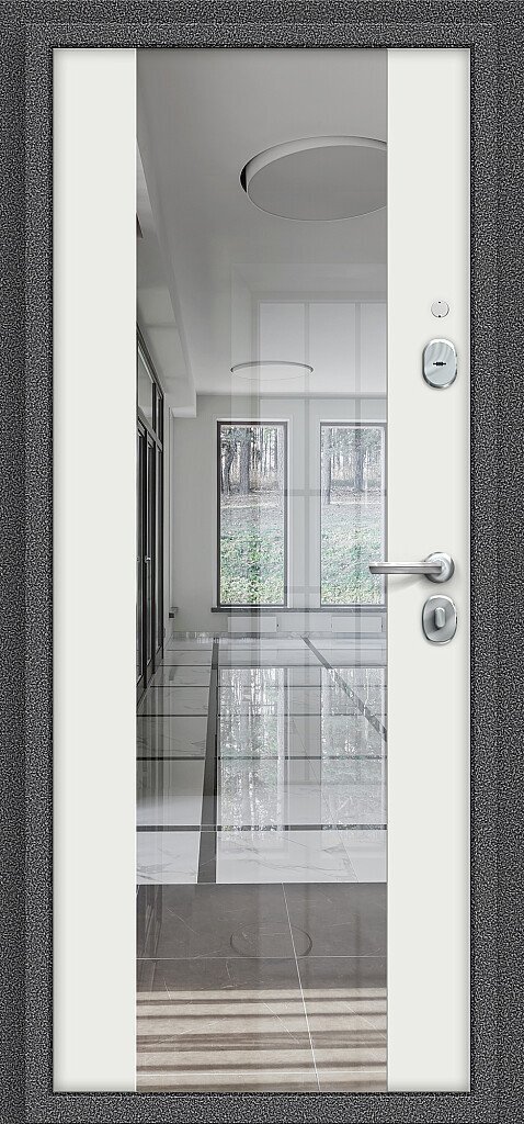 Панель МДФ с отделкой Эмалитом, толщина 8 мм, цвет белый, с зеркалом.