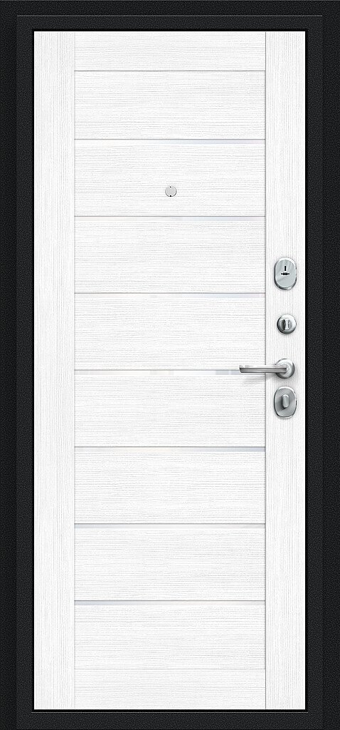 Семь усиливающих уголков и защитный карман для замков. Дополнительную стойкость ко взлому обеспечивают два противосъемных штыря.