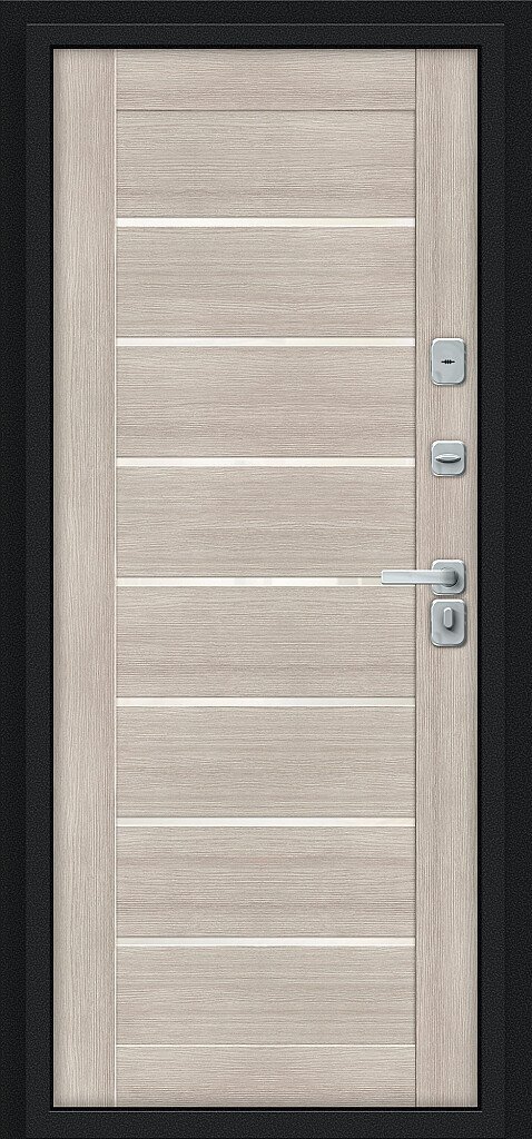 Терморазрыв (термомост) из натуральной пробки по периметру полотна. Внутри полотна установлена конструкционная теплоизоляционная панель SIP (Structural Insulated Panel), которая не только обеспечивает необходимую тепло- и шумоизоляцию, но и придает дополнительную жесткость и прочность дверному блоку.